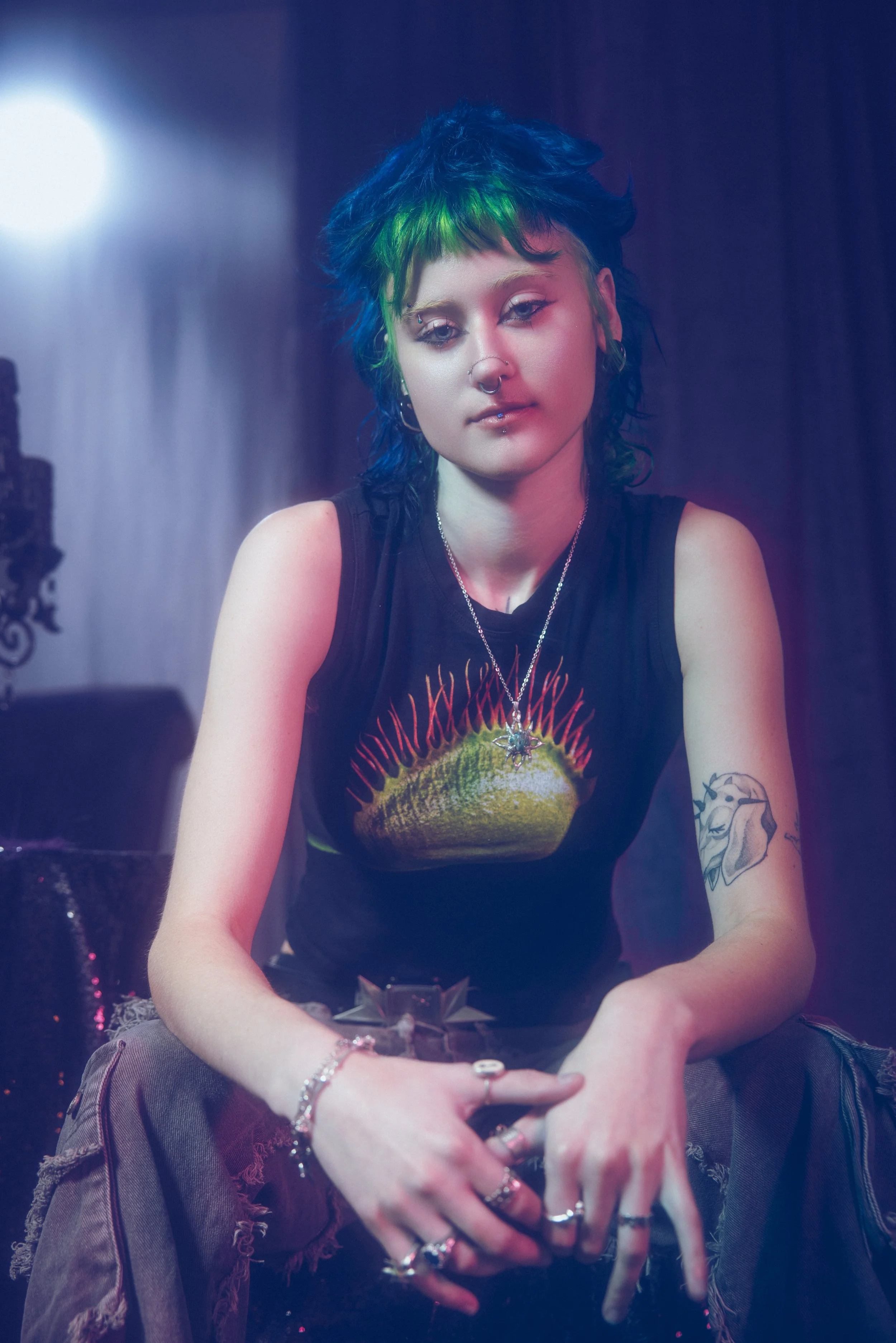 Hi! I’ve been in the hair industry for about 6 years, and I’ve loved every minute of it. To me, hair is a powerful form of self-expression, and helping clients find a cut or color that makes them feel like themselves is always my top priority. I’ve met so many incredible people through this industry, and I’m excited to meet more! I’m fueled by creativity, and anything unorthodox truly feeds my soul. I have a deep passion for vibrant color and funky cuts, and I believe your hair is an extension of your personal style. Collaborating with people to bring out their best look is what I love most! When I’m not in the salon, you’ll find me browsing local thrift markets, attending house shows, hanging out with my pets, or enjoying a good drag show!